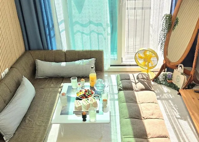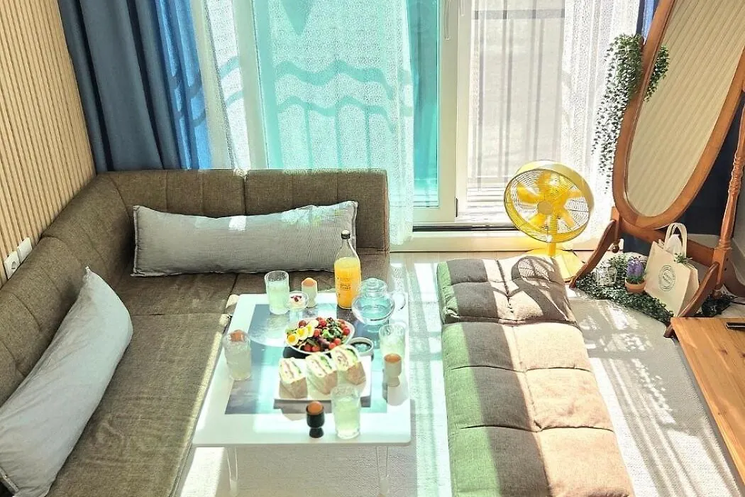 Among the self-catering amenities provided is an equipped kitchen with an electric kettle, a fridge, and kitchenware. The nearest bus stop to Funstay apartment is Jegwajeom Front, which is just 50 metres away.